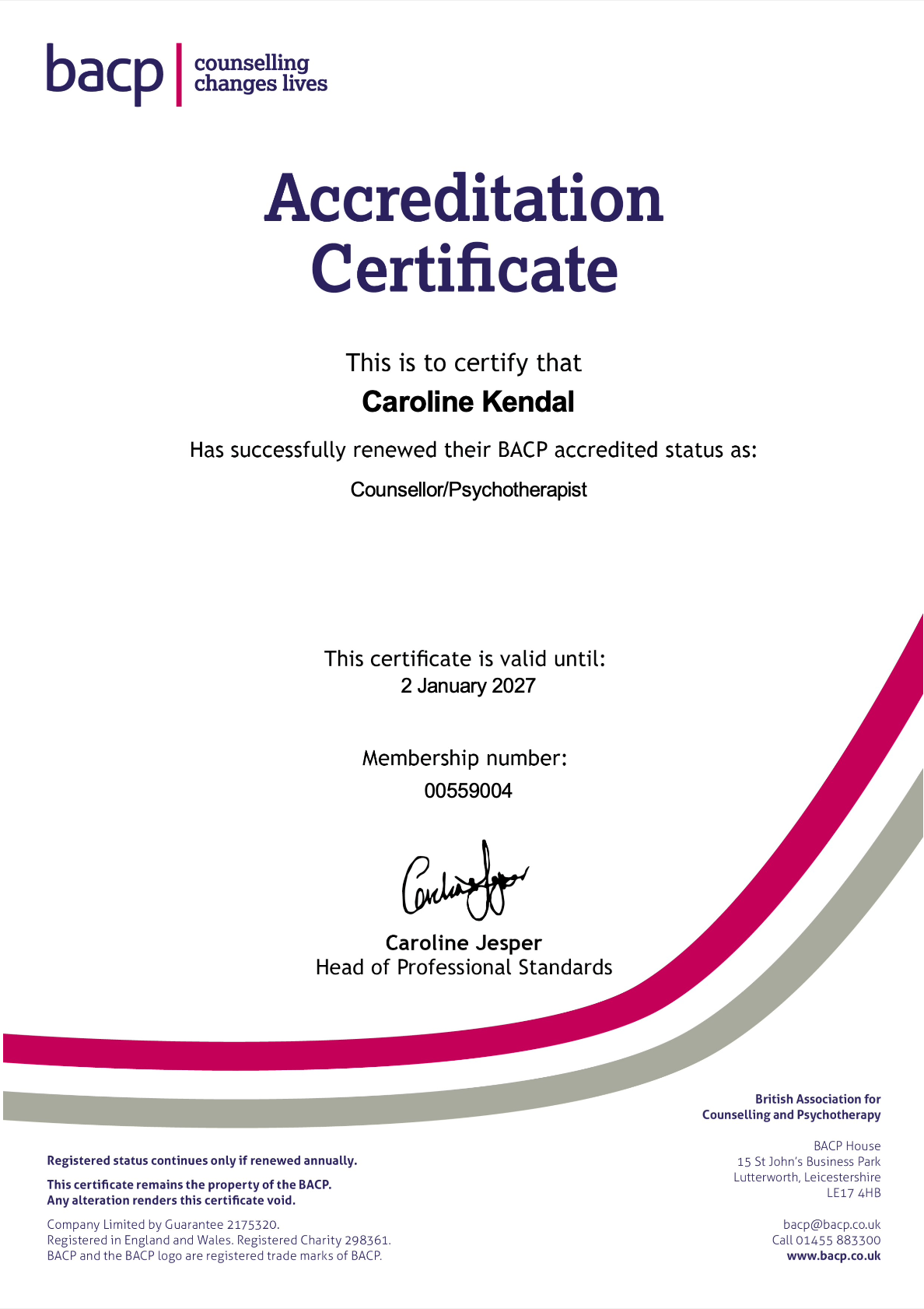 The BACP Register of Counsellors & Psychotherapists is a list of BACP members who have met the standards for registration. In addition, the Register has gained an important quality mark of accreditation by the Professional Standards Authority for Health & Social Care, which is an independent body accountable to Parliament. All registrants are bound by the Ethical Framework for Good Practice in Counselling & Psychotherapy.